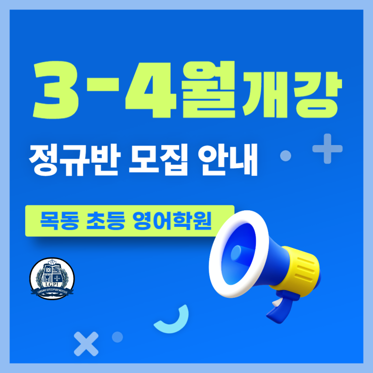 안녕하세요. 영어로 깊이있는 사고를 할 수 있어야 진짜 영어다! 목동 초등 영어학원 엘지피아이 어학원입니다. 새 학년이 시작되는 3월은 단순히 학년이 바뀌는 시기가 아닙니다. 영어 학습의 방향이 결정되는 시기이기도 합니다. 특히 초등 저학년은 ‘어떻게 시작하느냐’에 따라 영어에 대한 태도가 달라지고, 고학년은 ‘어디까지 확장하느냐’에 따라 중등·고등 대비의 깊이가 달라집니다. 시작은 가볍게 보일 수 있지만, 그 출발선에서의 선택이 몇 년 뒤 실력 차이로 이어집니다. 그래서 저희 엘지피아이 어학원의 정규반은 학년별 성장 단계에 맞춰 커리큘럼을 구성했습니다. 지금 바로 3-4월 개강 정규반 모집 안내에 대해 자세히 알아....... <img src="https://blogthumb.pstatic.net/MjAyNjAyMjZfMjcy/MDAxNzcyMDcyOTkxNTgw.Gs2rbruDk-wAiw8EBDtOEX7sdmVKLzwluyTLQvfVDMAg.NtkIeAS0ssZvmBo-LY-8NaqIvNXB6sGbP8XzC9B2DGUg.PNG/%B8%F1%B5%BF_%C3%CA%B5%EE_%BF%B5%BE%EE%C7%D0%BF%F8_%281%29.png?type=s3" />