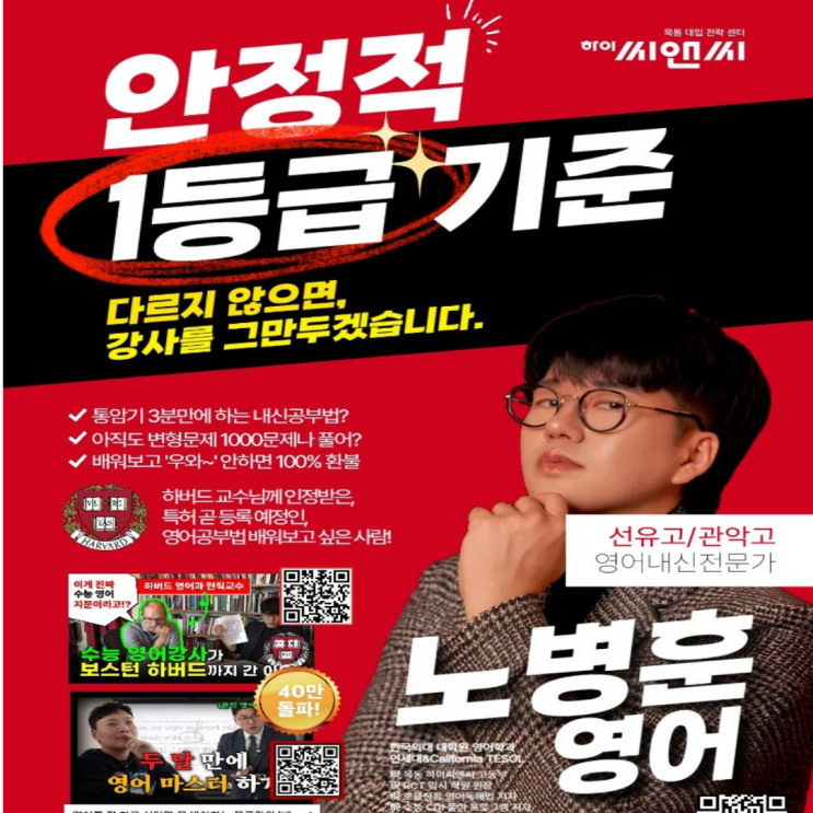 선유고 관악고 영어내신전문가 안정적인 등급유지 하이씨앤씨학원 노병훈T