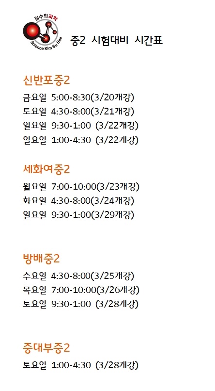 (중2, 중3 학교별 내신반) 경원중/신동중/원촌중/세화여중/신반포중
