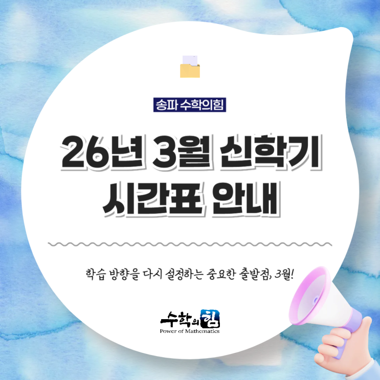 [가락초 수학학원] 송파 수학의힘 26년 3월 신학기 시간표 안내 ⏰