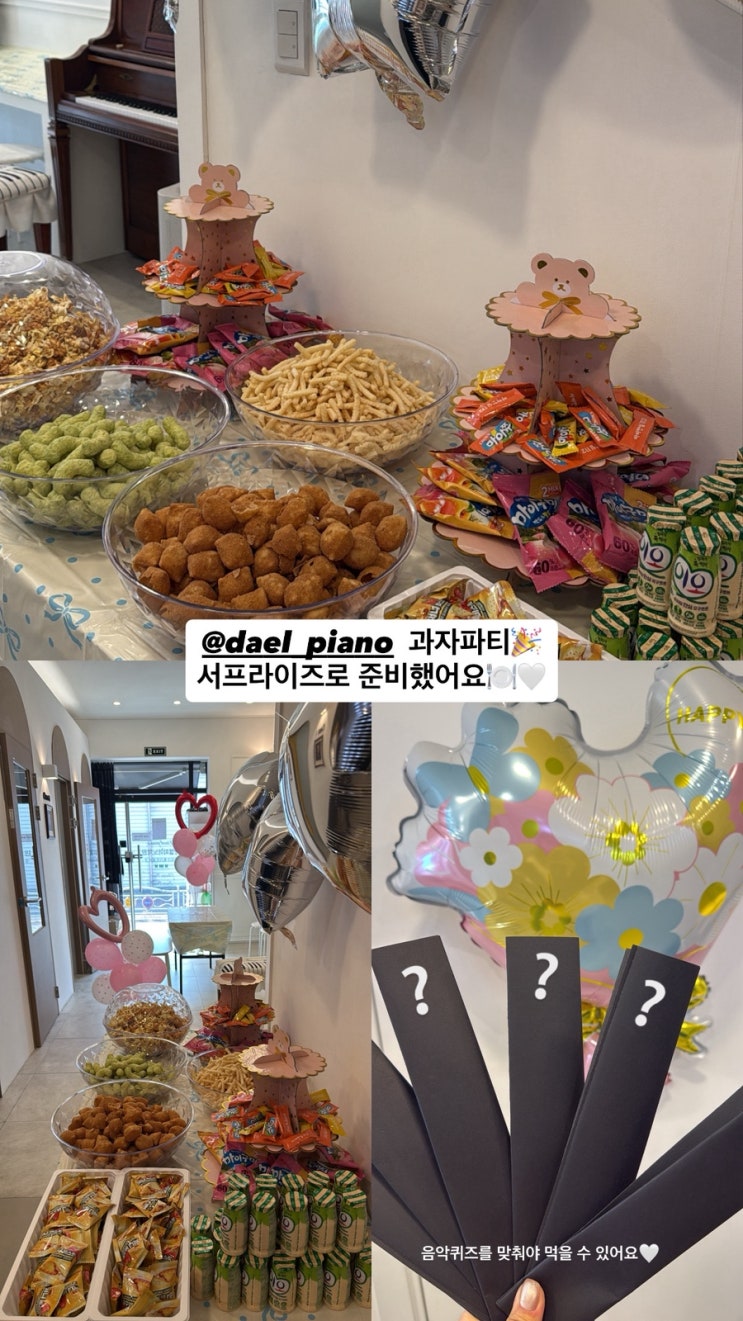 다엘피아노학원 과자파티에 초대합니다 깜짝 과자파티를 준비했어요 학원 이전 후 첫 파티에요! 좋아할 다엘친구들 생각하니 두근두근 ◡̎ 다엘 친구들이 넘 좋아한 과자파티~ 다음 파티때 만나요 #사천피아노학원 #사천다엘피아노 #사천다엘피아노학원 <img src="https://blogthumb.pstatic.net/MjAyNjAyMjZfMjgz/MDAxNzcyMDg2NzE4ODE4.xfr6o7EMYZsmrZbbGnK1MgKt29MbKqRZeEZo-UXFIcEg.ONSi4I9BbdGueCrbCRsiTClCMhvCTKLKjo0kAmG_Qqsg.JPEG/EF6C034D%A3%AD5599%A3%AD42F5%A3%AD8FC1%A3%AD8D5DB6E2E012.jpg?type=s3" />