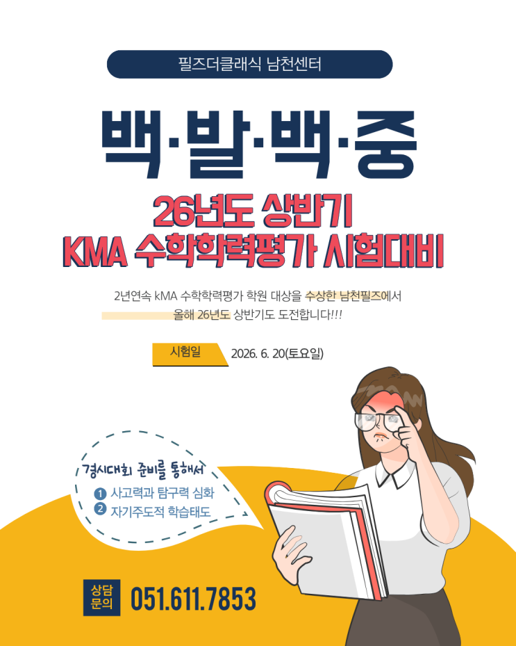 [필즈더클래식남천센터] 26년도 상반기 KMA수학학력평가 시험대비는 필즈와 함께!!