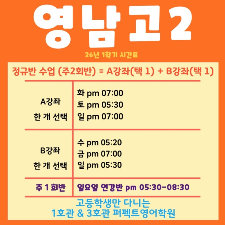 [영남고2][26년 1학기 시간표] [☆원장 직강☆]