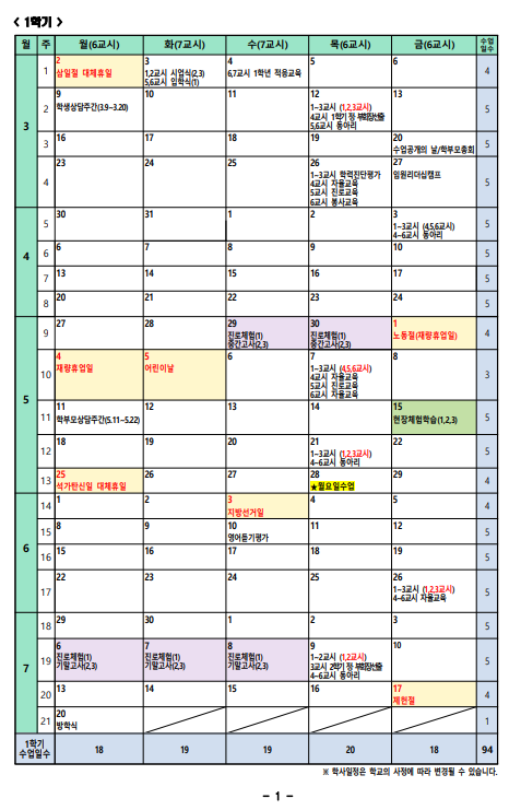 [개포동중등영어]개원중 중동중 개포중 대왕중 26년 학사일정 및 내신 시험 일정