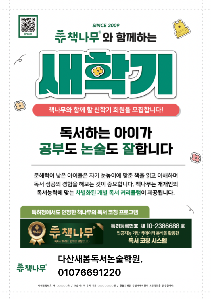 [책나무독서논술다산새봄점] 책나무와 새학기를 함께할 아이를 찾습니다!