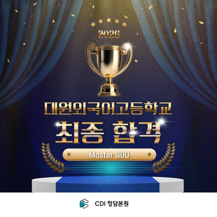 안녕하세요, 청담어학원 본원입니다. 오늘 2026 대원외고 합격자가 발표되었답니다~!! 학생들이 합격한 대원외국어고등학교는 국내 최고 수준의 외국어 교육과 글로벌 인재 양성을 목표로 하는 외국어 고등학교로, 다양한 언어 전공과 특화된 프로그램을 통해 학생들의 국제적 역량을 키우는 데 중점을 두고 있는 학교입니다. < 청담어학원 본원 2026 대원외고 합격생 명단 > Master 300 중3 박 O 인 Master 300 중3 박 O 린 2026년도 대원외고 입학경쟁률은 10년 통틀어 가장 높았는데요, 올해 경쟁률이 눈에 띄게 상승한 배경을 살펴보면, 고교학점제와 변화된 입시제도와 맞물려 이해할 필요가 있을것 같습니다. 고교학점제가 본격적으....... <img src="https://blogthumb.pstatic.net/MjAyNTEyMTlfNDcg/MDAxNzY2MTM0OTE5OTgz.Bo7w-s2obRcXd-F0Gg8VPfgv5dzBE-D7bJ8sszlfb9Ug.Q294ncJWa5jtv8K2S-mZHVqSRCbiCLUk1A45g0l_Ktwg.JPEG/%C1%A6%B8%F1%C0%BB_%C0%D4%B7%C2%C7%D8%C1%D6%BC%BC%BF%E4_%2815%29.jpg?type=s3" />