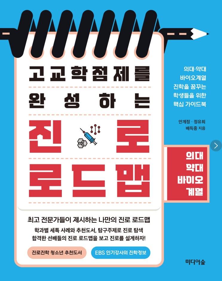 고교학점제를 완성하는 진로 로드맵 의대, 약대, 바이오 계열입니다. 학과별 세특 사례와 추천도서, 탐구주제로 진로탐색 합격한 선배들의 진로 로드맵을 보고 진로를 선택하자! 의대, 약대, 바이오 계열 진학 준비를 위한 모든 것! 책의 목차를 자세히 살펴봅시다! PART1. 의학, 치의학, 수의학, 한의학 계열 진로 로드맵 PART2. 약학 & 제약계열 진로 로드맵 PART.3 유전 & 생명계열 진로 로드맵 PART4. 간호 & 보건계열 진로 로드맵 의대, 약대, 바이오계열 진학을 꿈꾸는 학생들을 위한 로드맵! 고등학교 입학하기 전, 내가 무엇을 좋아하는지, 어떤 상황에서 즐거움을 느끼는지, 어떤 역할을 할 때 보람을 느끼는지, 스스로를 관....... <img src="https://blogthumb.pstatic.net/MjAyNjAyMjRfMTA1/MDAxNzcxODYxNTMxMzI5.07LwWZInMwedMdFb59wb4S6AjI95fDOg94ma7J0rTQwg.vc4hlImLhNMGpbnF-WgodYdFhhteHLqHj9pARsID0Vwg.JPEG/20260224_002647.jpg?type=s3" />
