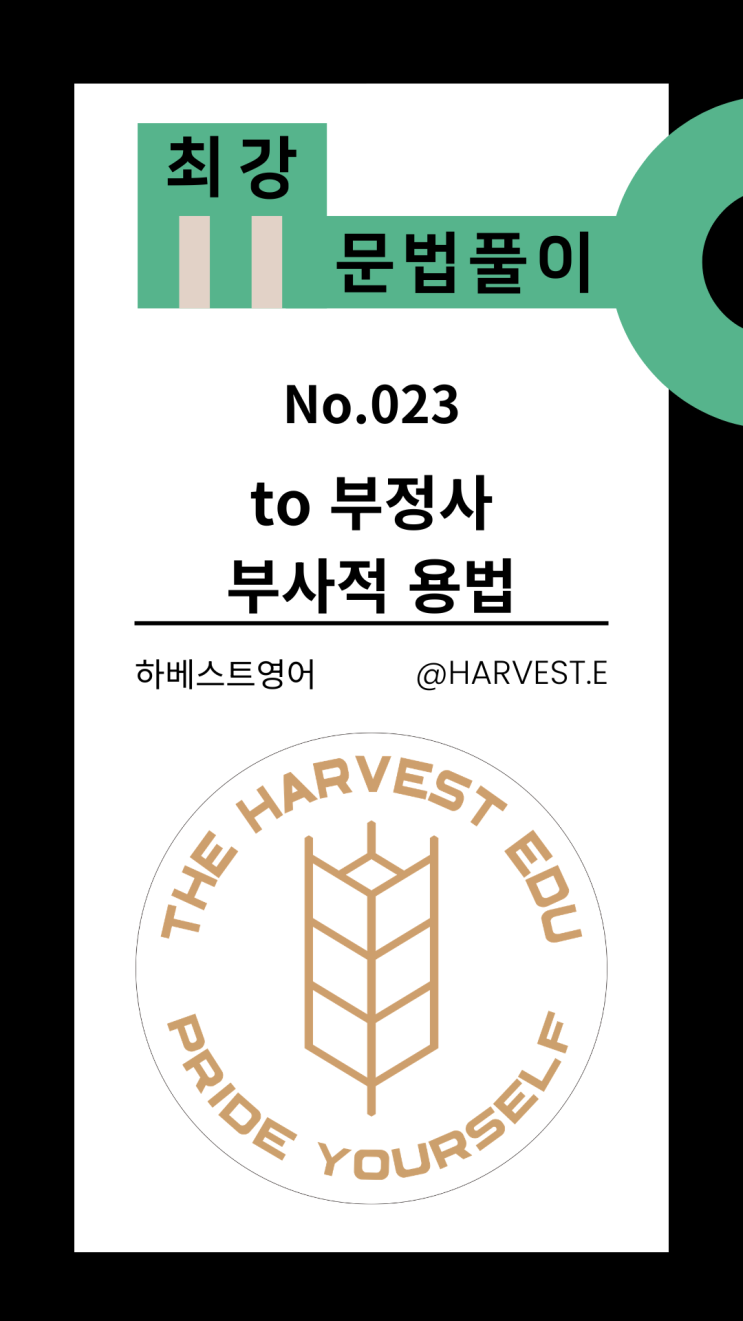 하베스트영어 진주 평거동 영어학원 입시영어 중1 [최강문법23 - to부정사 부사적용법]