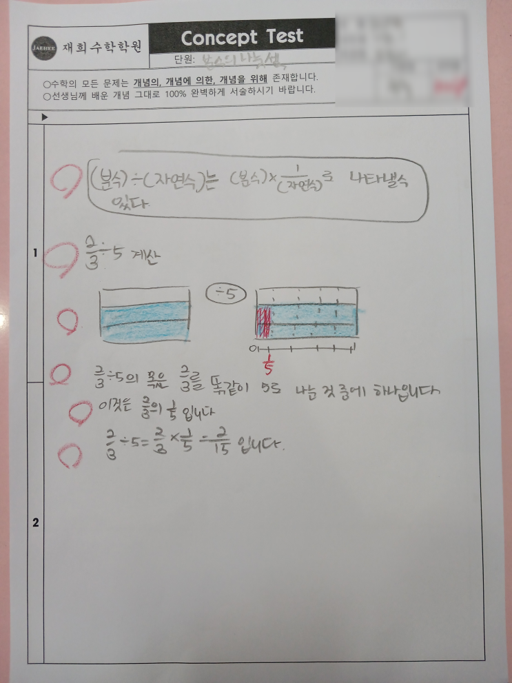 [침산동 수학학원] 재희수학학원 2월 9일 개념테스트