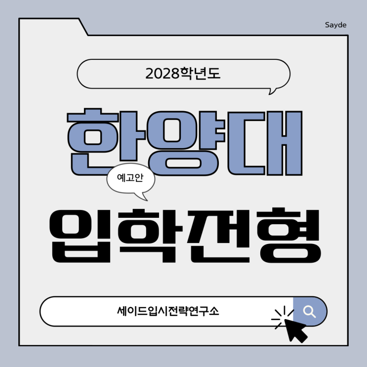 이번 2월 3일에 고교교사 및 교육관계자들을 대상으로 한 대입 포럼에서 한양대가 2028학년도 대입 관련 예고안을 발표하였습니다. 작년에 이미 서울대는 2028학년도 대입변경 내용을 발표하였고 경희대와 건국대에서도 관련 내용을 안내한바 있습니다. 지금부터 2028학년도 한양대 대입예고안을 분석하고 이를 준비하기 위한 컨설팅 프로그램도 안내해 드리도록 하겠습니다. 1. 개괄 2019년 서울소재의 대학들의 정시 비중이 약 40%로 조사되었고, 이는 과도한 사교육 경쟁을 유발한다는 의견이 나왔습니다. 그래서 교육부는 전형 개선 분야를 고교교육 기여대학 사업선정에 자율사업분야로 개설하였고 이에 서울대, 한양대, 동국대가 확정되었....... <img src="https://blogthumb.pstatic.net/MjAyNjAyMjVfMTAy/MDAxNzcyMDEzNDYyODI5.FtYOp8prWBxdy102uEa6AVSH-U-WEPf5hh_pnf77q7Ag.HuwEu0BFSSBHVk5gztt_JqnaJMeAT-ZXkOFtm7JZvjQg.PNG/001.png?type=s3" />
