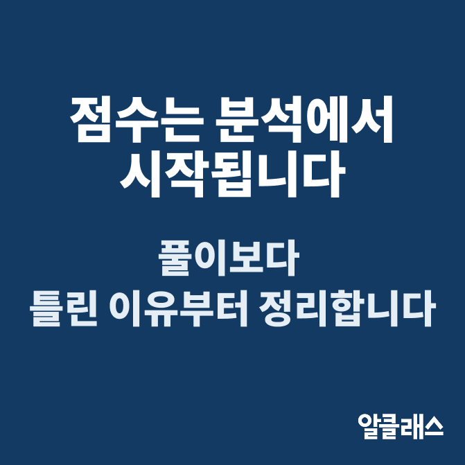 같은 시간을 공부해도 점수는 왜 다르게 나올까요. 문제를 더 많이 풀어서일까요, 아니면 집중력이 부족해서일까요. 알클래스 영어학원은 그 차이가 “분석의 깊이”에서 시작된다고 봅니다. 시험은 감으로 풀리는 것이 아니라 구조를 읽는 과정입니다. 지문에는 반복되는 전개 방식이 있고, 선택지에는 반복되는 함정이 있으며, 서술형에는 반복되는 감점 기준이 있습니다. 그 구조를 읽지 못하면 풀이량은 늘어도 결과는 흔들릴 수 있습니다. 수업은 풀이가 아니라 분석에서 시작합니다 알클래스의 수업은 문제를 많이 푸는 것으로 시작하지 않습니다. 먼저, 틀린 이유를 나눕니다. 단어 부족인지 문장 구조를 놓친 것인지 지문의 논리를 잘못....... <img src="https://blogthumb.pstatic.net/MjAyNjAyMjJfMjky/MDAxNzcxNjk1ODUzMzk0.tKJWbWyZqY6jf4GNRO95kEdvIUD4OunNvJqJq9jmH8wg.ShsXLgeVTXBLJFpNN4IEUaPOmV1-xzzvJMB-Izh_jDEg.PNG/2%BF%F926%C0%CF-1.png?type=s3" />