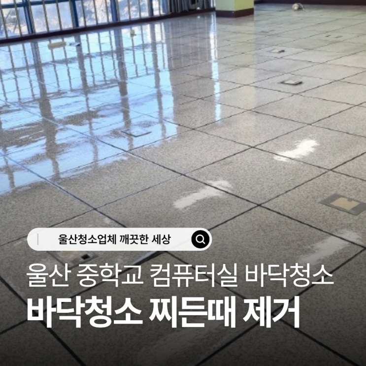 안녕하세요 울산청소업체 깨끗한 세상입니다. 목차 1.청소 전 점검 2.전문 장비 투입 3.건조 후 마무리 컴퓨터실은 일반 교실과 달리 전자기기와 전선, 책상 등으로 인해 평소에는 바닥 전체를 꼼꼼하게 관리하기가 쉽지 않습니다. 특히 장시간 같은 자리에 놓여 있는 컴퓨터 본체와 책상 아래에는 눈에 띄지 않는 먼지와 찌든 오염이 조금씩, 그리고 꾸준히 쌓이게 되는데요 이번 현장은 컴퓨터 교체 및 장비 이동 일정에 맞춰 책상과 모든 기기가 이동한 상태에서 바닥 전면을 집중적으로 청소하였습니다. 청소 전 점검 컴퓨터실에 들어서자마자 바닥 전반에 검은 찌든 때와 묵은 오염이 눈에 들어왔고 단순한 물 청소로는 해결하기 어려운....... <img src="https://blogthumb.pstatic.net/MjAyNjAxMjlfNjYg/MDAxNzY5NjM2MjE3NDgy.HvUSYsrAYUrWYd9GuqE3e8OgzLNAxnM06sTc0uiYA1gg.2eWhFkq6bh90Fxy5MDlm1P4fB3KugdSylY-L-gHNQFog.PNG/1.png?type=s3" />