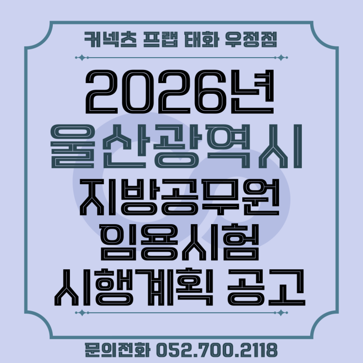2026년도 울산광역시 지방공무원 임용시험 시행계획 공고 [울산공단기][울산공무원학원][울산관리형독학관][울산커넥츠프랩]