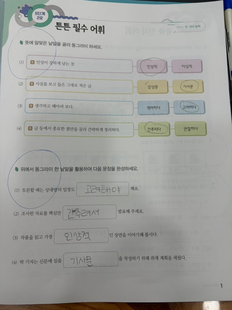 5형식에 대해 배우고, 응용문제도 풀어 보았습니다. 처음 10문제에서는 처음이라 헤매었는데, 시행착오를 거쳐 스스로 푸는 법을 익히니 잘 풀게 되어 거의 오답이 없네요. ^^ 5형식도 스스로 설명하고, 설명에서 부족한 부분을 보완해서 다시 구두 설명했습니다. 열심히 한 만큼 부족한 부분이 잘 채워지고 있네요. 정성껏 꼼꼼히 지도할께요. 감사합니다. ^^ <img src="https://blogthumb.pstatic.net/MjAyNjAzMDNfMTQ3/MDAxNzcyNTIxMzYxMzQ5.GS0BA7KD2cpnfB7RBjjXX6YVitKo5Go0Uaurz6353X0g.nSObgQd5H3biTz46j36bmpqb_4i6ukXkDVywvHIBJwog.JPEG/900%A3%DF20260303%A3%DF160104.jpg?type=s3" />