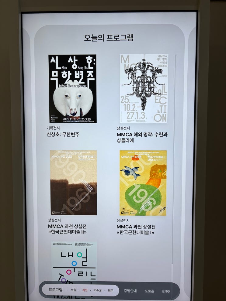 2026년 2월 8일 국립현대미술관 과천점. 여름이면 책 한권 들고 미술관 앞 벤치에 앉아 커피 한잔과 함께 읽다 오곤 했습니다. 지난 이건희컬렉션 관람 후 오랜만에 찾은 국립현대미술관입니다. 집근처에 있기에 마음 먹음과 동시에 움직일 수 있어서 얼마나 감사한지요^^ 전시를 다녀온 친구의 추천으로 참으로 신비로운 전시를 관람하고 왔습니다. 흙으로 빚은 푸른 색의 도자기는 그 자체로 아름다움입니다. 그러나 작가는 거기에 멈추지 않고, 아프리를 영감으로 한 많은 작품을 만들어왔습니다. 이제 신비로운 작품이 펼쳐집니다~ㅎ 더 많은 작품이 있었으나, 저는 이만큼의 작품만으로도 그 놀라움에 압도 되었기에 더이상 사진 찍기를 포....... <img src="https://blogthumb.pstatic.net/MjAyNjAyMjRfMTky/MDAxNzcxOTA1MDIyMDk4.hhK6TKRGleRfu_-C91qpJ6HIO7412tUxg2ByOXh3GQMg.seD08oAGVMTfSYdWf3sPmSjnIOxiguMB9Nr1PxP1IyYg.JPEG/KakaoTalk_20260224_124520369_25.jpg?type=s3" />