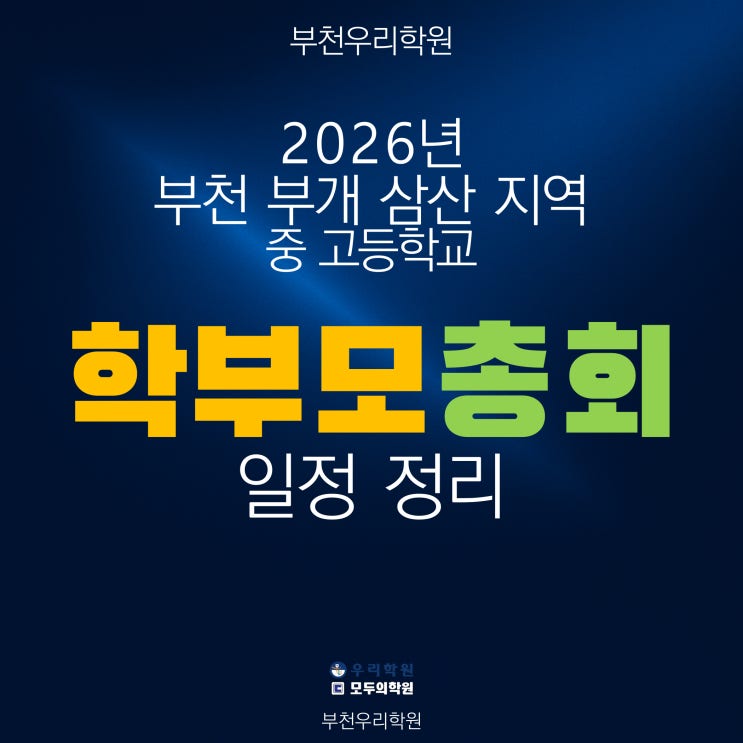 부천수학학원 우리학원 2026년 3월 중동 상동 삼산 부개 소재 중학교 고등학교 학부모총회 일정 정리