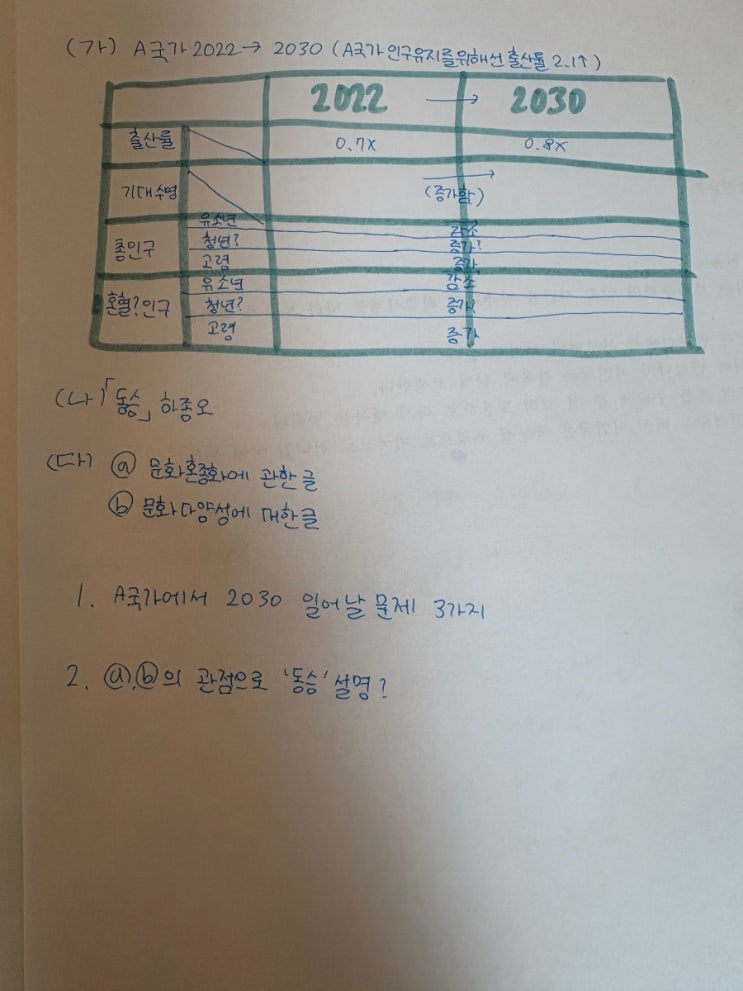 예비 중등시기 사고를 말로 구조화하기 연습! 최근 교육 평가에서는 단순한 지식 암기보다 자료를 해석하고 자신의 사고를 논리적으로 설명하는 능력이 점점 더 중요하게 요구되고 있습니다. 특히 상위 교육 과정이나 심층 평가에서는 정답을 말하는 것 뿐만 아니라 자료를 분석하고 문제의 원인을 추론하며 해결 방향을 설명하는 과정 자체가 중요한 평가 요소가 됩니다. 위와 같은 유형의 문제를 살펴보면 학생에게 요구되는 능력이 무엇인지 분명하게 드러납니다. 표나 자료를 통해 제시된 정보를 읽고, 인구 구조 변화와 같은 사회 현상을 해석한 뒤, 앞으로 발생할 수 있는 문제를 예측하고 설명해야 합니다. 또한 나열이 아니라 서로 다른....... <img src="https://blogthumb.pstatic.net/MjAyNjAzMTFfMjIw/MDAxNzczMjMyNDE5ODMw.hvmWmbAXBymcjDITQhWGq9p0b16d_o7KHFDTNwv7bvMg.4J8T63HR1zNBX2R2D73UapyEp3-NRrlsoZKjgnxYAOEg.JPEG/900%A3%DF1766487350848.jpg?type=s3" />