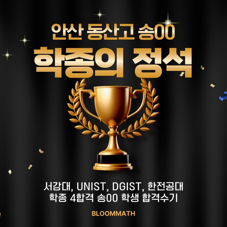 항상 성실하게 노력하는 모습이 어느 선생님에게나 눈에 띄던, 참 밝고 즐거운 학생이었습니다. 안산 지역에서 학생부 종합 전형으로 어떻게 대학을 준비해야 하는지, 그 정석적인 길을 묵묵히 걸어간 동산고 송ㅇㅇ 학생의 진솔한 이야기를 전합니다. 1. 나를 잡아주는 환경, 그리고 우선순위 제가 합격하는 데 가장 중요했던 요소는 공부 환경과 마음가짐이라고 생각합니다. 저는 집 앞 독서실이 편해도 굳이 학교에 남아서 야간자율학습을 하려고 노력했습니다. 조금 쉬고 싶어도 주변 친구들이 열심히 공부하는 모습을 보면 더 자극을 받았고, 졸려도 옆에서 깨워줄 친구가 있다는 것이 참 중요했거든요. 7시부터 10시까지 자습실에서 열심히....... <img src="https://blogthumb.pstatic.net/MjAyNjAyMjBfNjgg/MDAxNzcxNTYzNDIzNTk3.mb4Pm3MpfGAgBilb2e8MoWanq_p6-o1c_3jECo_OUu8g.gxA-JVFrmGsnBPk5ybGfDDWw6bmjn5m6q_KHUWD4pAcg.JPEG/2.jpg?type=s3" />