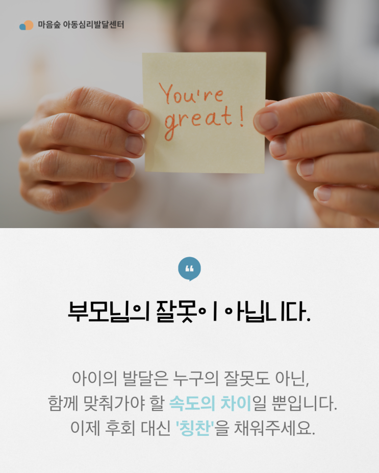 [파주운정아동심리발달] "엄마 탓이 아니에요" 죄책감 대신 아이를 변화시키는 '칭찬의 한 마디'