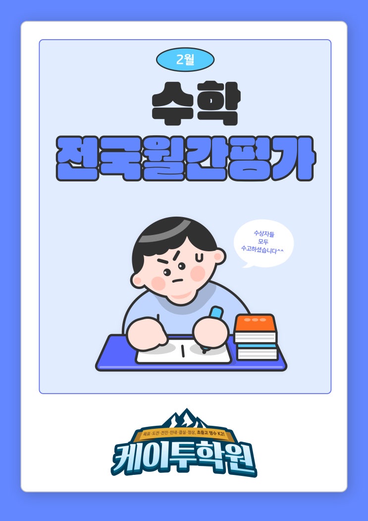 안녕하세요 케이투 학원입니다 한 달 동안 열심히 공부한 여러분 모두 멋져요^^ 3월도 파이팅! <img src="https://blogthumb.pstatic.net/MjAyNjAzMTFfNTEg/MDAxNzczMjEwOTQ3MDUw.dbLwflMV9tIVtXxudL92fu2s6MapON9qLhIgy5P0Zm8g.yd1dVlPmSRVAbckDiO8BcgdsvddDD_zOyWxOY9MIkXkg.JPEG/%BC%F6%C7%D0-%C0%FC%B1%B9%BF%F9%B8%BB%C6%F2%B0%A1-001_%281%29.jpg?type=s3" />