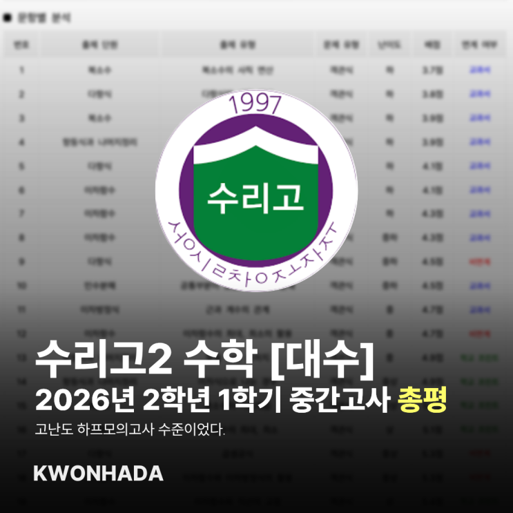 2026 수리고2 수학 1학기 중간고사 총평 ㅣ 수리고 수학학원 ㅣ 수학을 권하다