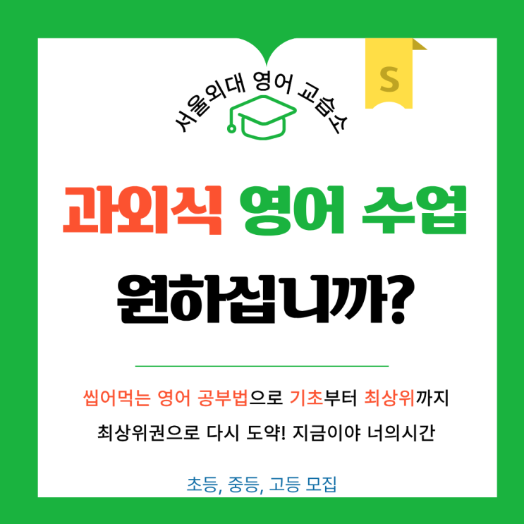 이천 과외식 영어 수업 [서울외대영어교습소] 하브루타 논술 교습소 바로 옆^^