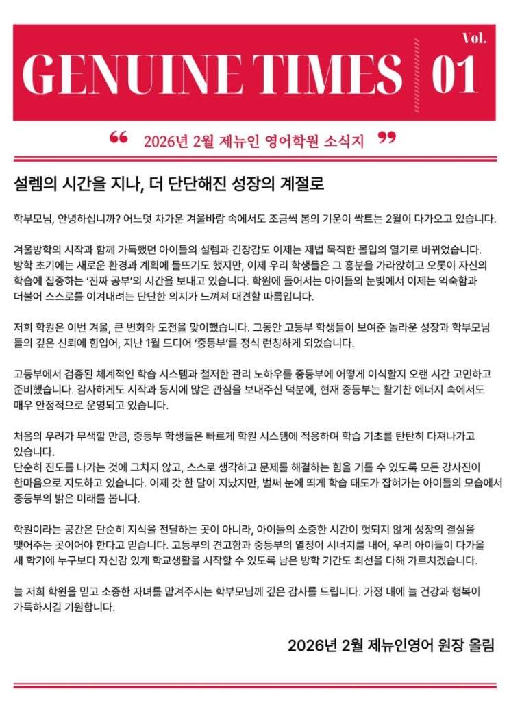 [제뉴인 프라임] 저희 "제뉴인 중등부"는 이렇게 교육합니다! (feat. 2월 소식지)