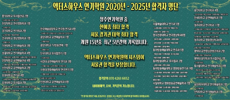 [청주연기학원] 왜 합격은 액터스하우스 연기학원인가? (20년 - 25년 합격자 명단)