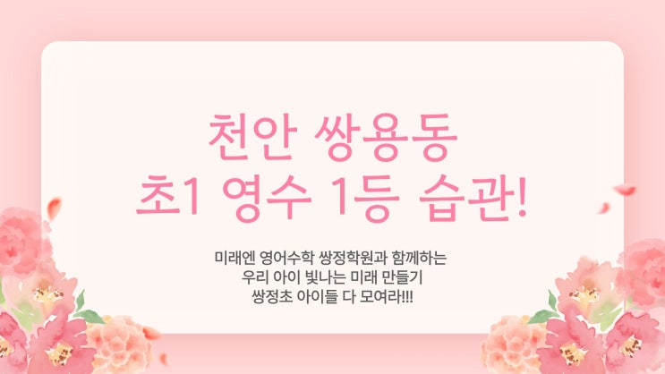 천안 쌍용동 초등 1학년 학원, "아직 이른데?" NO! 미래엔에서 만드는 '영수 1등 습관' (쌍정초 앞)