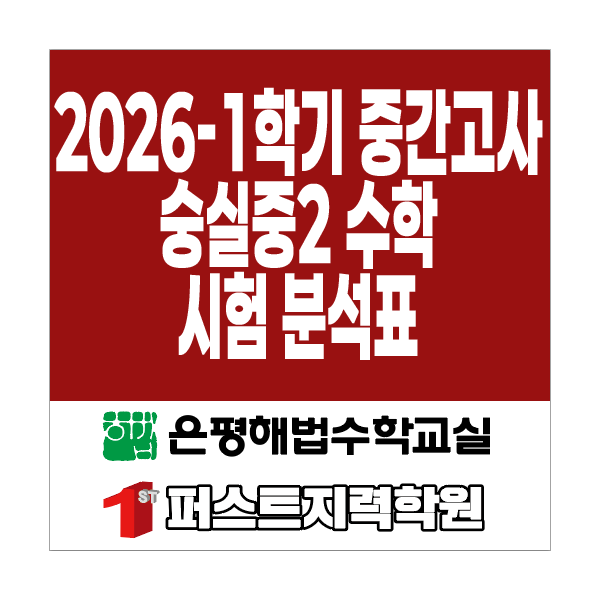 안녕하세요^ㅡ^ 퍼스트지력/은평해법수학교실입니다. 오늘은 2026년 1학기 중간고사 숭실중2학년 수학 과목의 분석 및 저희 학원 시험대비 교재에서 나온 적중 문제까지 소개할겠습니다! 숭실중학교는 숭실중학교는 모든 단원의 중요 기본 개념에 대해 묻는 문제가 많이 출제되고 올해부터는 2학기 두 단원이 시험범위에 추가되어 미리 선행으로 개념 공부를 하지 않은 학생들은 기본 개념을 숙지하고 문제 풀이를 하는 데 다소 시간이 걸렸으리라 생각됩니다. 2026 1학기 중간고사 분석 숭실중 2학년 수학과목 총평 다른 학교와는 달리 시험 범위가 1학기와 2학기 내용이 통합되어 있어, 학생들은 시험 대비를 여러 부분으로 나누어 챙겨서 학습....... <img src="https://blogthumb.pstatic.net/MjAyNjA0MjZfMTcg/MDAxNzc3MTgyMTY1NDQz.KBDIdnjBG2BJ9OX-BGnyv4ulHN39K1BsHymiJj7xZkAg.PPLg0fnLpnY6cKLET8vj7jVl623uNF7daklTvRkDe7Ug.PNG/19.png?type=s3" />