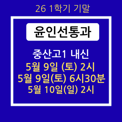 윤인선 통과 26 1학기 중간 중산고1 개강 안내