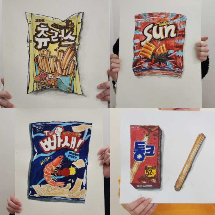 안녕하세요 오랫만에 인사드리는 비비드쌤입니다이번 드로잉 타임에는 아이들과 과자 정물화를 진행했어요. 많이들 하시는 수업이지만 비비드 아이들도 꼭 필요한 수업이라 진행했답니다♡ 무려 귀요미 초등 1학년부터 중등 친구들까지 함께 도전한 수채 정물 수업이에요. 이번 수업의 핵심은 **‘관찰’**이었어요. 그냥 보고 그리는 게 아니라, 어디부터 시작할지 생각해보고 어떤 순서로 색을 올릴지 정해보고 빛이 어디에 닿는지, 그림자는 어떻게 생겼는지 하나씩 짚어보는 시간이었어요. 과자 봉지라고 해서 쉬워 보이지만 막상 그려보면 주름, 반사, 글자, 질감까지 생각보다 표현할 게 정말 많거든요. 잘 그리는 친구 그림을....... <img src="https://blogthumb.pstatic.net/MjAyNjAyMTNfMTM0/MDAxNzcwOTEzMjczODg4.3YMMsFS83n0a2W9-VAn_lOG-c3hUyV_vnoTo13EmwQUg.nKmErVyotTRU742EHS8H0lQr-CLXXoNxB6gj13L5T7sg.JPEG/900%A3%DF20260129%A3%DF195827.jpg?type=s3" />
