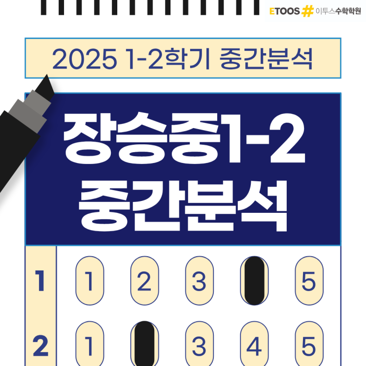 안녕하세요, 이투스수학학원 상도점입니다. 자유학년제/학기제 변화 속에서도 우리 1학년 학생들의 학업 성취도를 확인할 수 있었던 2025년 장승중 1학년 2학기 중간고사 분석을 안내드립니다. 이번 시험은 좌표평면의 이해부터 삼각형의 합동 조건까지, 중등 기하의 기초가 되는 핵심 단원들이 포함되어 어느 때보다 개념 정립이 중요한 시험이었습니다. 1. '좌표평면 위의 도형' - 초반 기선제압 (4번) 단순히 좌표를 찍는 것을 넘어, 좌표평면 위에 그려진 삼각형의 넓이를 구하는 문제(4번) 가 초반부에 배치되었습니다. 사각형을 그려서 빼거나 밑변×높이를 정확히 찾아야 하는 유형으로, 계산 실수를 유발하여 초반 페이스를 흔....... <img src="https://blogthumb.pstatic.net/MjAyNjAxMzFfMTgz/MDAxNzY5ODM3Mzk5MTky.BvbMgup0NzcK4r7Y1G19aP95i6yn1ekixBMkzngN1acg.Vo_ZbNZ51yfDmVY5aTkNAblDYLLMlItadxpgmd1ze30g.PNG/%C1%A6%B8%F1%C0%BB_%C0%D4%B7%C2%C7%D8%C1%D6%BC%BC%BF%E4._%288%29.png?type=s3" />
