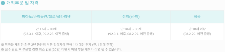 안녕하세요 반포동 이엘 스트링 음악학원 원장 엘쌤입니다. 국내의 메이저 음악 콩쿠르인 중앙 음악 콩쿠르의 전반적인 일정·지정곡·연주영상까지 함께 살펴봅시다! 개최부문 및 자격 피아노/바이올린/첼로/클라리넷:만 17세-30세 (95.3.1. 이후,09.2.28. 이전 출생) 성악(남·여):만 18세-33세 (92.3.1. 이후, 08.2.29. 이전 출생) 작곡:만 18세 이상 (08.2.29. 이전 출생) 2026 중앙 음악 콩쿠르 일정 인터넷 접수 : 2026년 1월 중 예선 : 2026년 3월 중 본선 : 2026년 3월 중 2026 중앙 음악 콩쿠르 바이올린 지정곡 <1차 예선> ① N. Paganini : 24 Caprices Op.1, No.18 in C Major ② J. S. Bach : Violin Partita No.3 in E Major, B....... <img src="https://blogthumb.pstatic.net/MjAyNTExMTdfMjUg/MDAxNzYzMzU1MTI1MDQx.ZREUJah-_uB3PKJEadtY1dNyPinHZM_gSm-nhzndO4Qg.VPZFKAqtz2Ir_A2cmaTiwmFIJuVxL-zXN6UR7HfJLXwg.PNG/%BD%BA%C5%A9%B8%B0%BC%A6_2025-11-17_%BF%C0%C8%C4_1.52.01.png?type=s3" />