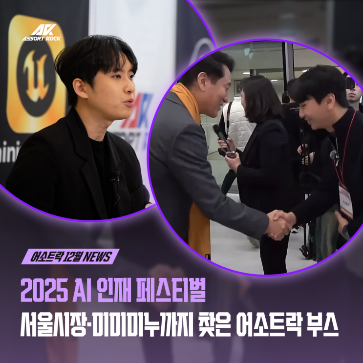 <함께 보면 좋은 포스팅> AI시대 게임 개발자가 주목해야할 진짜 역량 뉴스 취재부터 인기 유튜버의 게임 플레이까지 어소트락 시연 부스에 쏠린 시선 2025 AI 인재 페스티벌 청년·기업·교육기관이 한 공간에서 만난 자리 [ 2025 청년취업사관학교 AI 인재 페스티벌 WEEK ] 이번 2025 청년취업사관학교 AI 인재 페스티벌은 AI·콘텐츠 산업 종사자부터 채용 기업 관계자, 그리고 예비 취업자까지 다양한 인원이 참여하며 채용·교육·기술 트렌드를 직접 교류하는 자리였습니다. 즉, 이를 통해 미래 산업 직무에 필요한 실전 역량을 확인할 수 있었죠. AI 인재들이 한자리에 모인 페스티벌 현장 어소트락 게임 체험존, 반....... <img src="https://blogthumb.pstatic.net/MjAyNTEyMjNfODcg/MDAxNzY2NDgxNjIyODE0.zBydu9TVSBJ_y70fQNX0ssNceg7EBe1ff2nkRjP3GF4g.NsxEdpR1NlIi6soEhDPJtHf0XWC0zxSTvvVMx9ktyksg.PNG/12%BF%F9_%287%29.png?type=s3" />