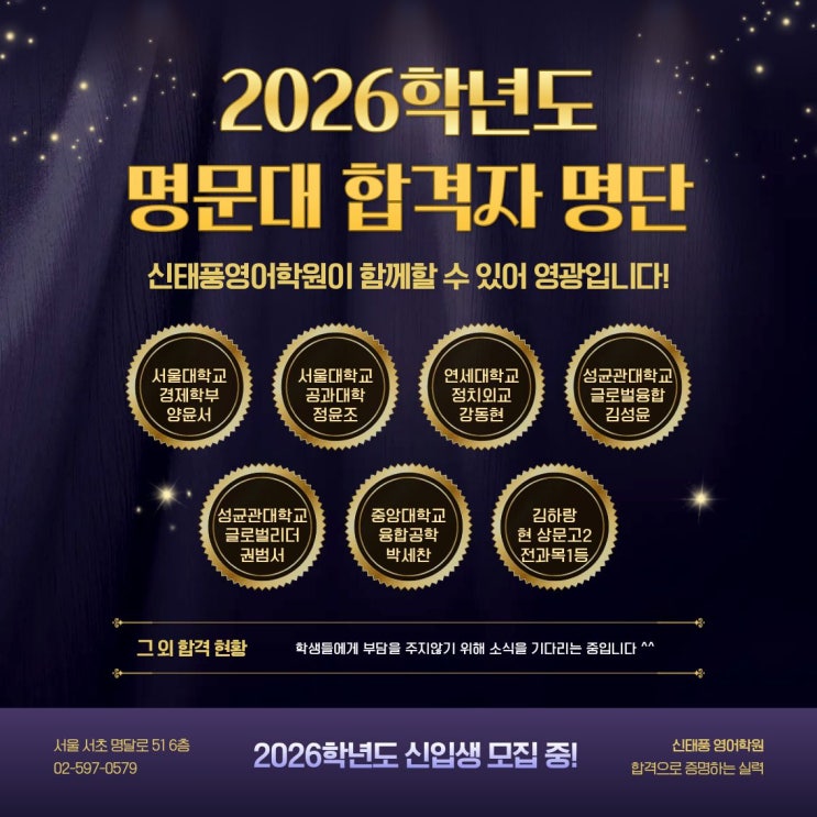 ★ 2/23 ~ 3/7 예약은 "오늘[2/19(목)] 오후 8시"에 OPEN 됩니다 ★ ★ 12/29 ~ 2/28 겨울 방학 기간으로 오전 9:30부터 시작합니다 ★ ★ 3/3부터 학기 중 일정으로 오후 1:30부터 시작합니다 ★ ★ 3/2 삼일절 대체휴일로 휴원합니다 ★ <학원 운영시간 > 방학기간 :평일 오전 9시30분 ~ 오후 7시 / 토요일 오전 9시30분 ~ 오후 3시30분 학기 중 : 평일 오후 1시30분 ~ 오후 8시 30분 / 토요일 오전 9시30분 ~ 오후 3시30 <예약제 수업안내> 1. 방학 중 수업 시간표 2. 학기 중 수업 시간표 3. 예약을 원하시는 시간이 마감된 경우 번거로우시더라도 원으로 전화 주시면, 예약이 가능할 수 있습니다. (02-5981-101) 4. 네.......