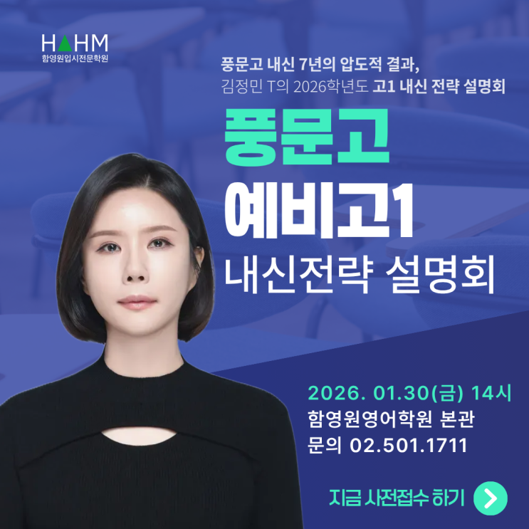 풍문고 영어 내신은 출제 범위, 부교재 구성, 서술형 비중이 매우 높은 학교로 일반적인 내신 준비만으로는 안정적인 1등급을 만들기 어렵습니다. 이에 함영원영어에서는 풍문고 입학을 앞둔 학생과 학부모님을 위해 대치동에서 풍문고 내신만을 7년간 집중 연구해온 전문가, 함영원영어 김정민 선생님이 2026학년도 풍문고 신입생들을 위한 필승 전략을 공개합니다. ★ 풍문고 합격을 진심으로 축하합니다! ★ ▶ 일시 : 1월 30일(금) 오후 1시 ▶ 대상 : 풍문고 입학 예정 학생,학부모님 ▶ 장소: 대치동 함영원영어학원 본관 102호 ☎ 문의: 02-501-1711 ▶ 풍문고 고교 내신 설명회 신청 바로가기 특별 초청 프로그램 2026학년도 의대 합....... <img src="https://blogthumb.pstatic.net/MjAyNjAxMjdfMTkz/MDAxNzY5NDk4Mjg5NTMx.GieYB--v5sGjhZXtJy7XXP2BKnssazujsz1g3ei07mQg.pzNcKVlr20ePZLWubl4al2fO0MO-pRDsJmzuOupCKv4g.PNG/%C7%B3%B9%AE%B0%ED_.png?type=s3" />