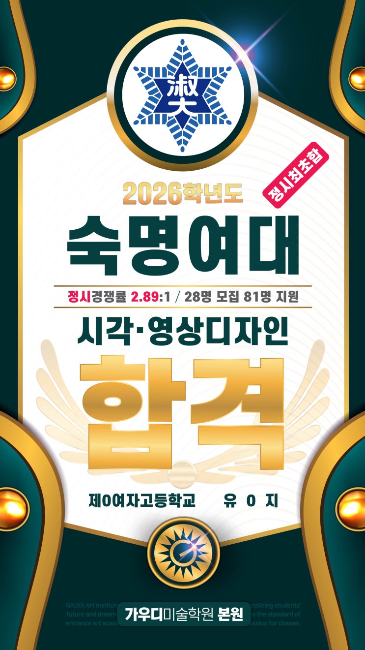 강남미술학원 가우디 | 강남미술학원 가우디 2026학년도 미대 정시 합격 발표! 숙명여자대학교 합격 안내!!