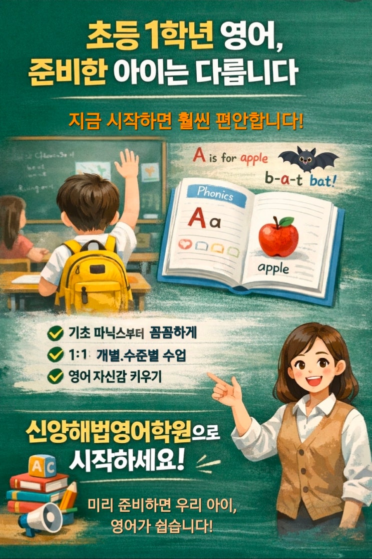 양산신양초등학교 예비 1학년 학부모님들과 상담을 하다 보면 가장 많이 나오는 질문이 있습니다. “초등학교 들어가면 영어는 언제부터 시작하나요?” “한글도 이제 겨우 읽는데, 영어까지 시켜도 될까요?” 결론부터 말씀드리면 초등 1학년 영어는 ‘빨리’가 아니라 ‘제대로’ 준비하는 것이 핵심입니다. 양산신양초등학교 일정, 초1은 이렇게 흘러갑니다 초등 1학년 1학기 초반은 ✔ 학교생활 적응 ✔ 생활 규칙 익히기 ✔ 국어·수학 기초 다지기에 집중합니다. 영어는 본격적인 평가 과목이 아니지만, 알파벳·소리·기초 단어 노출은 자연스럽게 시작해두면 편안해집니다. 이 시기에 아이들 간 차이가 벌어지는 이유는 단 하나입니다. ....... <img src="https://blogthumb.pstatic.net/MjAyNjAyMjVfMjAg/MDAxNzcyMDE1MTE3MDcw.12PoiaeUpMkXTAubhSqAUVMmSUqBch_LWF9FhFTpVKQg.t9QugJGqv7LuTWbAleLi_G-9DPXAFP8GDPvx_3rPfrkg.JPEG/900%A3%DFScreenshot%A3%DF20260225%A3%DF112537%A3%DFChatGPT%A3%A81%A3%A9.jpg?type=s3" />