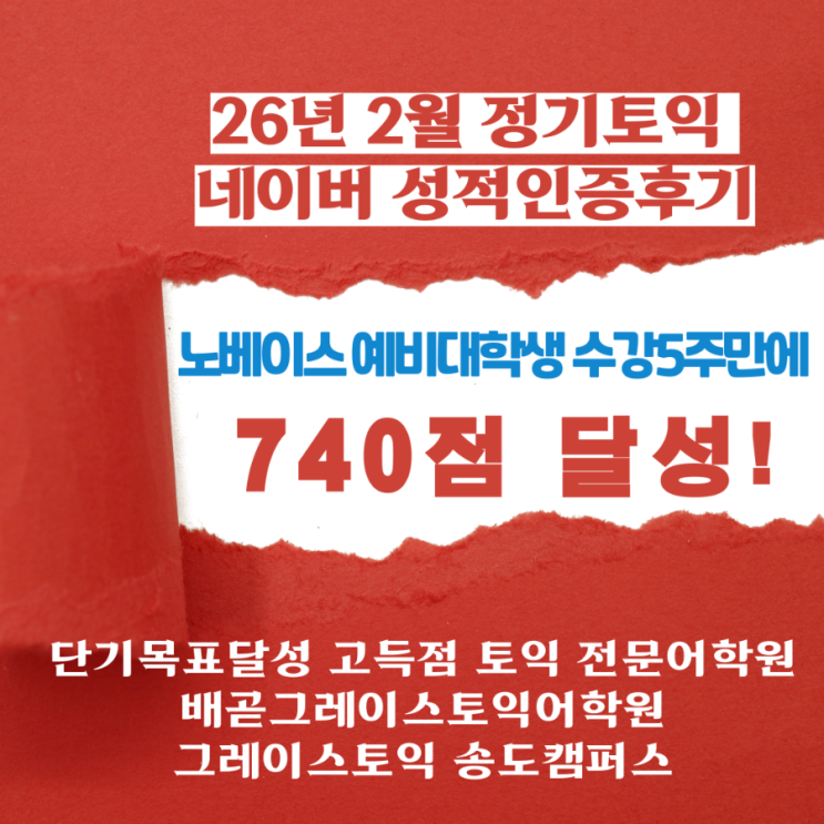 [배곧토익/송도토익] 그레이스토익어학원 노베이스 예비대학생 수강5주만에 740점달성! 2월 정기토익성적인증후기