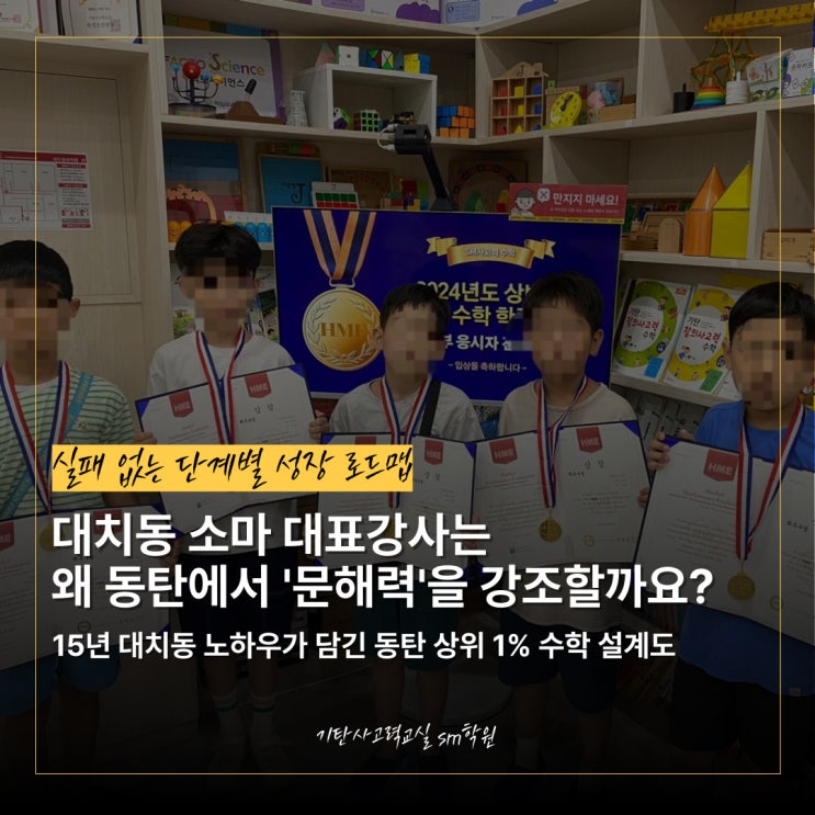 아이가 글자는 읽는데, 정작 문제의 뜻을 모른다면? 그건 실력이 아니라 '독해의 구멍'입니다. 안녕하세요. 대치동과 분당 소마에서 4년간 상위 1% 아이들의 로드맵을 설계해온 영천동전과목학원 SM 양선미 원장입니다. 저 또한 영천동에서 아들을 키우며 '엄마표 학습'의 한계에 부딪혀본 경험이 있기에, 어머님들이 느끼는 그 막막함을 누구보다 잘 알고 있습니다. 단순히 연산을 틀리는 게 아니라 "문제가 뭘 묻는지 모르겠어" 라고 말하는 아이에게 필요한 것은 문제집 한 권을 더 푸는 것이 아닙니다. 사고의 징검다리가 되어줄 '문해력'과 스스로 끝까지 읽어내는 '엉덩이 힘'입니다. 전....... <img src="https://blogthumb.pstatic.net/MjAyNjA0MjVfMjcx/MDAxNzc3MDg2MjA1ODE2.Y7V4YDOw04d6AKN1BYp81wh_mLc4Epk6wVSrj3iW2zkg.n3HkhG0bo9cYfiRRwEf1XXq8rMOlsg2uJCYWkK4hQwAg.JPEG/1.jpg?type=s3" />