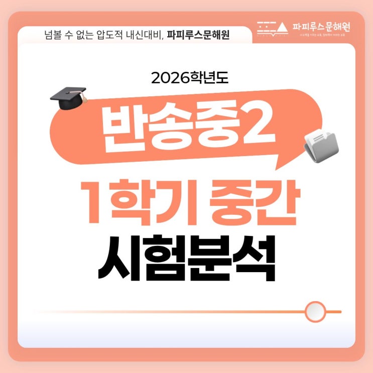 안녕하세요, 동탄 NO.1 "17년간의 신뢰, 약속된 미래" 최고의 수업 + 따뜻한 관리❤️ 흔들리지 않는 국어 자신감, 수능 국어·내신 국어의 절대 강자 파피루스문해원 나루&능동관입니다. 동탄 반송 중학교 2학년 1학기 1차 지필 평가(중간고사) 국어 출제 분석 자료입니다. 학생 및 학부모님들께 도움이 되셨으면 합니다. 시험 구조 및 배점 출제 영역별 분석 출제 영역별 대표 문항 및 특징 특징: 작품의 주제를 작가의 의도와 연결할 수 있는지 확인하는 문항 특징: 자음의 분류 기준에 따른 음운의 특성을 이해하고 있는지 확인하는 문항 특징: 단모음 체계표 / 자음 체계표 내용에 대한 정확한 암기를 확인하는 문항 총평....... <img src="https://blogthumb.pstatic.net/MjAyNjA0MzBfMjkz/MDAxNzc3NTI4MTY1NjUw.qq58hCBh4q39rOijTtC67HOXJfop8y9dojjLbfJreCcg.C4m5O6ZjhYwZ1DGpD0FXm4GAcA-KQl3S0wcrHz0XLAgg.JPEG/1.jpg?type=s3" />