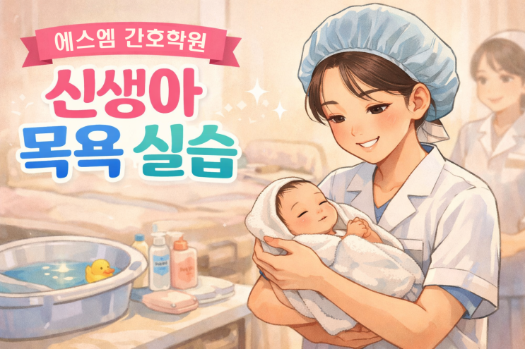 안녕하세요~ 오늘은 신생아 목욕 실습을 해본 우리 수강생들의 모습을 포스팅 해보려고 해요~ “내가 과연 아기를 잘 씻길 수 있을까?” “너무 작아서 놓치면 어쩌지?” 이런 긴장과 두근거림으로 작고 여린 신생아들을 따뜻한 손길과 진심 어린 태도로 실습에 임한 우리 수강생들의 모습을 보러갈까요??? 실습 전 준비 마인드 - 감염 예방을 위한 청결한 손 씻기 - 손톱 정리, 악세서리 제거 - 실습 시에는 침착하고 부드러운 말투 사용 준비물 체크리스트 신생아 모형 (또는 환아 대체 모델) 욕조, 따뜻한 물 (37~38도) 아기용 비누/바디워시 거즈 타월, 큰 수건, 배냇저고리, 기저귀 로션, 베이비 오일 교환대 또는 바닥 매트....... <img src="https://blogthumb.pstatic.net/MjAyNjAxMzBfOTAg/MDAxNzY5NzU4MTE2MjEx.nDWWwfeNCM7__fl6usx-IpB9-iSAWj8Njsugs4ypXUcg.QM8B0UKrnxrIYp2PpGPRI1fvj5dbcyL2TNYTE_T1EjYg.PNG/ChatGPT_Image_2026%B3%E2_1%BF%F9_30%C0%CF_%BF%C0%C8%C4_04_00_31_%BA%B9%BB%E7.png?type=s3" />