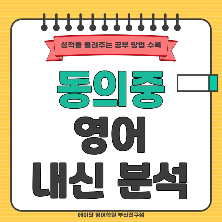 반갑습니다. 에이닷 영어학원 부산진구점 이주영 원장입니다. 이제 슬슬 고등 준비도 해야 할 것 같은데, 어떻게 해야 할지 모르겠네요... 새해가 엊그제 같은데 벌써 2월이 시작되었습니다. 현재 중2(예비중3) 학생들은 중학생이 된 지도 얼마 지나지 않았는데 올해만 지나면 벌써 고등학생이 될 겁니다. 예비중3 시기가 되면 고등학교 대비를 어떻게 해야 할지 고민을 하시는 학부모님들이 많이 계실 텐데요. 학부모님의 생각처럼 중학교에서의 마지막 남은 올해 1년이야말로 고등학교에서 1등급으로 상위권을 만들어 줄 수 있는 기간입니다. 이를 위해 이번 글에서는 동의중 2학년 2학기 기말고사 영어 내신 분석과 고등학교에서....... <img src="https://blogthumb.pstatic.net/MjAyNjAyMDRfMTUy/MDAxNzcwMjEwOTA5NDkw.ubTEY69LG3pYfV7rD2o2ZpujsMd_sgWjUK_cLVQ0X5Ag.clvRQe0RfLXE3Cij9gYwGlsO6-jQNrTUtWxXPx0q7sYg.JPEG/20260204-1.jpg?type=s3" />