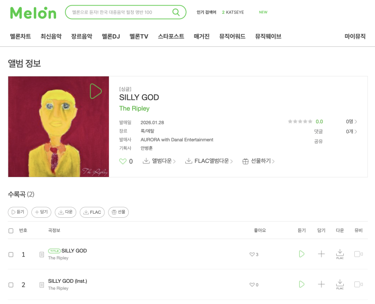 서면실용음악학원 학원생 음반발매 'The Ripley - SILLY GOD'/알소동보컬 싱어송라이터 미디작곡학원