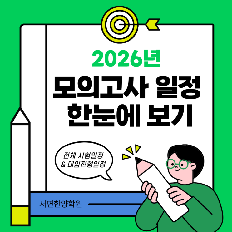 2026년(2027학년도) 대학입시를 준비하는 수험생에게 전국단위 모의고사 일정 파악은 매우 중요합니다. 모의고사는 자신의 실력을 객관적으로 진단하고, 수능전략을 세우는데 큰 도움을 줍니다. 아래 2026년 실시되는 주요 모의고사일정을 정리했으니 참고해보세요^^ 2026년 고3 모의고사 일정 3월 24일(화) - 서울특별시 교육청 5월 7일(목) - 경기도 교육청 6월 4일(목) - 한국교육과정평가원 7월 8일(수) - 인천광역시 교육청 9월2일(수) - 한국교육과정평가원 10월 20일(화) - 서울특별시 교육청 11월 19일(목) - 수능 고1,고2 모의고사는 3월,6월,9월,10월 예정되어 있습니다. 학년별 모의고사 일정은 추후 변동될 수 있습니다. 2026 모의고....... <img src="https://blogthumb.pstatic.net/MjAyNjAyMDRfODAg/MDAxNzcwMTg4MDc2NjUx.-vd9wAa9NaqUVLfWLViPdrKsqBjxpVsQt8rvmwW9gzwg.qjlWjly7PrwRwBXxTQeMdle17cnCfAVmA5wPRdz9MSUg.PNG/1.png?type=s3" />