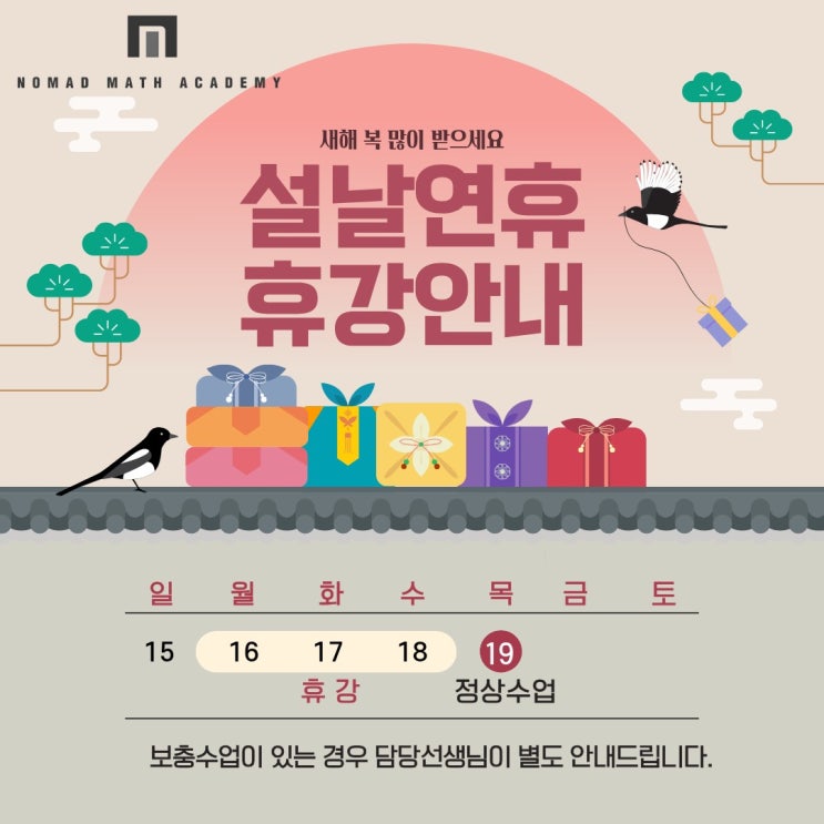 [노마드수학전문학원 센텀점] 2026 설연휴 휴강 안내