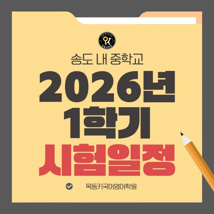 안녕하세요 목동키국어영어학원입니다. 벌써 3월의 첫날이 오며 새학기의 시작을 알리고 있는데요. 개학을 대비하여 송도 내에 있는 중학교 1학기 시험일정을 들고 왔습니다! 현송중, 은송중, 능허대중, 예송중 먼저 갖고왔습니다. 박문중, 해송중, 신송중, 미송중, 신정중은 아직 학사일정이 나오지 않은 관계로 차후 나오는대로 다시 공지 올리겠습니다♥ 목동키국어영어학원 블로그 놀러오시면 시험대비에 유용한 자료들 많이 공유되어있으니, 놀러오세요! <img src="https://blogthumb.pstatic.net/MjAyNjAzMDFfMTA1/MDAxNzcyMzM3OTg4Nzc2.fAG9lYlBhW0UWAtmUMtpD8zUu3qmAIcJyDPHYx2TsHMg.uctb_rfjQCBca9jbnJK6rPeGuSB5MwzhBXiTdh7A02cg.JPEG/1.jpg?type=s3" />
