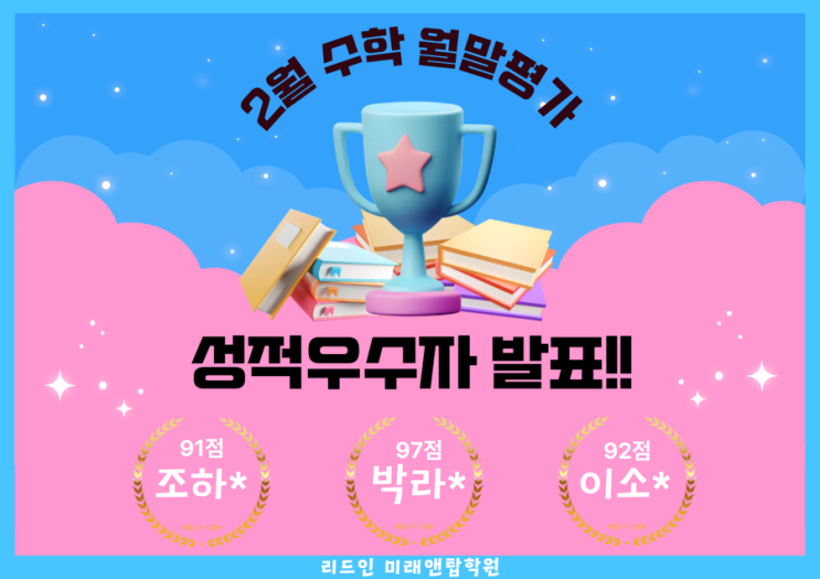 [복수동수학학원][복수동리드인]복수동 수학학원 미래앤탑 2월 월말평가 성적 우수자 발표!