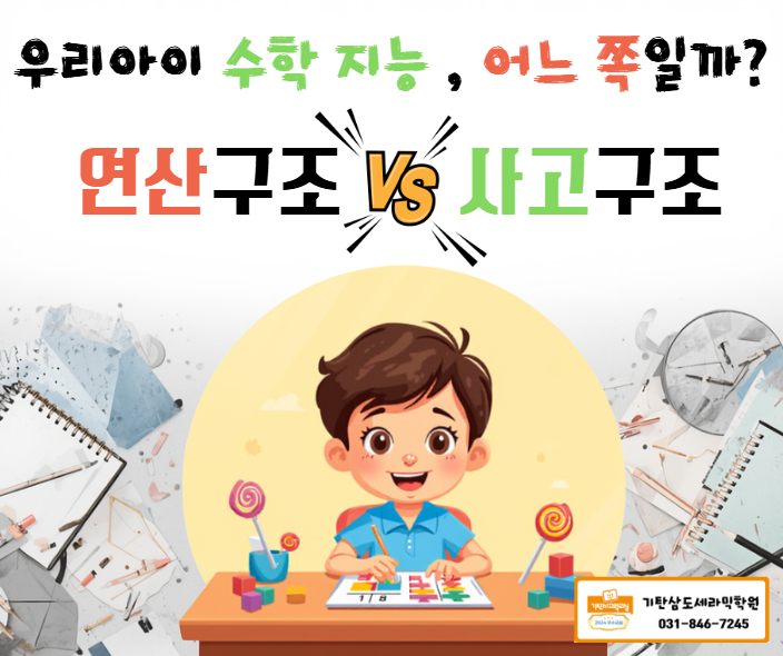 안녕하세요? 우리 아이들의 수학 자신감을 책임지고 있는 기탄신곡삼도세라믹학원입니다. 6세, 7세, 그리고 초등1학년의 학부모님들과 상담을 하다보면 수학 교육의 두 갈래 길에서 고민을 많이 하십니다. "사고력 수학이 중요하다는데 연산이 느리면 어쩌죠?" "연산만 시키자니 나중에 문장제 문제를 못 풀까봐 걱정돼요." 결론부터 말씀드리면, 우리 아이 수학 지능은 '속도'와 '구조'가 완벽한 밸런스를 이룰때 비로소 완성이 됩니다. 기탄신곡삼도세라믹학원에서는 이 두마리 토끼를 어떻게 잡고 있을까요? 우리아이의 수학 지능은 어느 쪽일까요? 학부모님의 대부분은 '얼마나 빨리 계산....... <img src="https://blogthumb.pstatic.net/MjAyNjAzMDdfMTc2/MDAxNzcyODEwNzcwMzQz.giDaxoZBB1KnifFDqtNTOwgUF6NRl9M_9-7defAL2Osg.1Q79UANa7WiEJ2GSHTnuNHNXljzaPB8p3VKTASi1reEg.PNG/image.png?type=s3" />